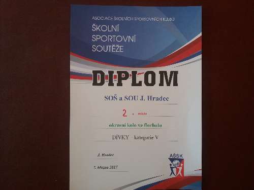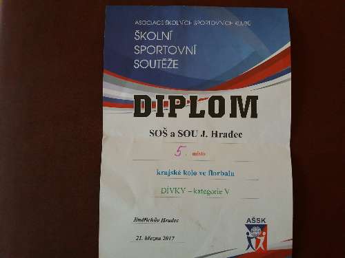 - FLORBAL - okresní kolo SŠ chlapců se konalo ve ČT 2.3.2017 v Městské sportovní hale v Jindřichově Hradci. Družstvo chlapců pod vedením Ondřeje Bušty (3.roč. SOŠ) získalo trofej za celkové 3. místo.