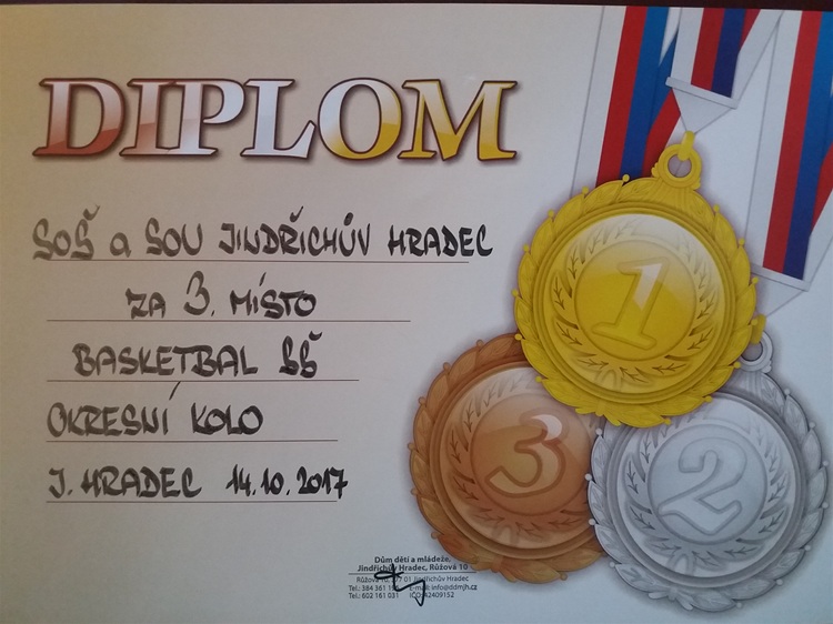 BASKETBAL - chlapci, okresní kolo se odehrálo 14.11.2017 v nové sportovní hale v Jindřichově Hradci. Družstvo chlapců ze SOŠ a SOU JH