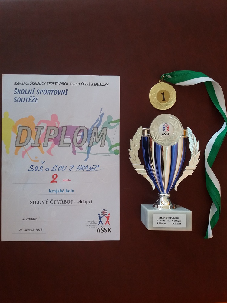 SILOVÝ ČTYŘBOJ - otevřené KRAJSKÉ kolo SŠ se uskutečnilo 26.3.2018 v tělocvičně TJ Slovan Jindřichův Hradec. Družstvo chlapců a dívek pod vedením loňských vítězů Josefa Klímy (2.C SOŠ) a Evy Němcové (1.B SOŠ) obsadilo celkové 2. místo.