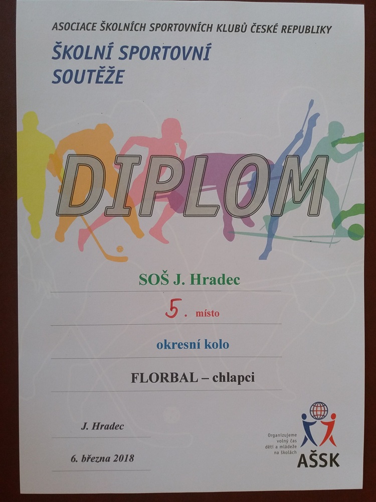 FLORBAL - okresní kolo SŠ chlapců se uskutečnilo 6.3.2018 v Městské sportovní hale v Jindřichově Hradci a tělocvičně TJ Slovan J.Hradec. Družstvo chlapců